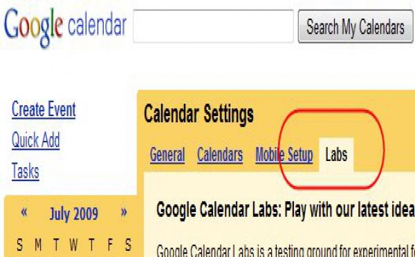Google ajoute un Labs dans Google Agenda - 16/07/2009