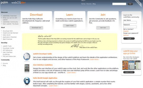 Beaucoup l'attendait depuis un bon moment, et il devait être mis en ligne vers la fin de l'été. Le SDK de Palm WebOS est maintenant rendu public et les développeurs peuvent le télécharger sur le site dédié. Sur le site du WebOS, estampillé en BETA, on trouvera également tous les renseignements ...