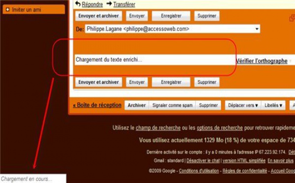 Décidément, je fais beaucoup appel a vous en ce moment. Voilà ce qu'il m'arrive depuis ce matin, mon compte Gmail semble complètement bloqué lorsque je veux envoyer un mail. Dans le cas d'une réponse, vous voyez le résultat en image, et lorsque je veux envoyer un mail, l'interface de rédaction de mail ne s'ouvre pas...