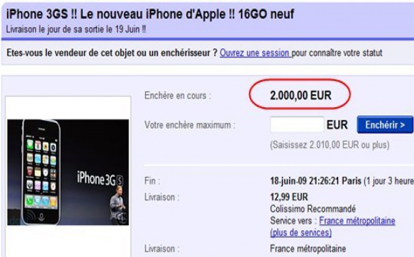 iPhone 3GS - 2000 € sur eBay !!! N'importe quoi - 17/06/2009