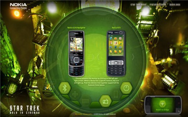 Nokia a mis en ligne un site spécialement dédié à Star Trek ou, les possesseurs de téléphone Nokia pourront télécharger des sonneries ainsi que des " trailers " du film Star Trek qui sortira le 5 aout 2009. Des fonds d'écran pour PC sont aussi disponibles. L'occasion aussi pour Nokia de faire la promotion de ses mobiles...