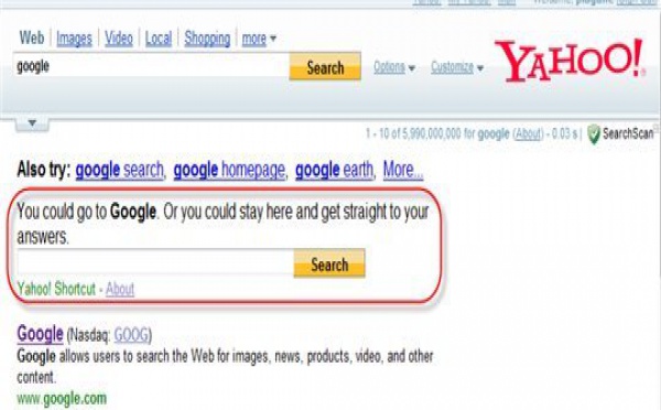En voilà une bien bonne. Lorsque vous allez sur le moteur de recherche de Yahoo !, et que vous tapez " google ", voilà ce que l'on peut voir sur le moteur ( image ci-dessus) Et le texte dit : " Vous pouvez aller directement sur Google ou vous pouvez rester ici et accéder directement à vos réponses ". Sont gonfler quand...