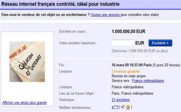 Hadopi vend l'Internet Français sur eBay - 06/03/2009