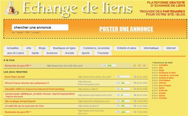 On le sait, vendre des liens peut rapporter un peu d'argent mais peut provoquer la foudre Google sur le PR. Par contre, l'échange de liens est un acte gratuit et qui peut rapporter gros, surtout de la part de sites ou blogs ayant un PR plus important que le votre. C'est ce que propose ce site, Echange de Liens, qui permet...