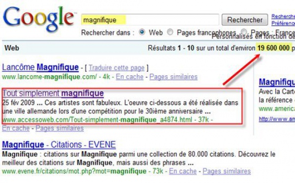 Le référencement est un métier que je ne maitrise qu'à une toute petit échelle mais je me réjouie parfois de voir mon blog dans des positions idéales sur Google. Sur certains mots clés ou combinaison de mots, je m'amuse parfois à essayer de passer devant les autres mais c'est en général très difficile car les petites...