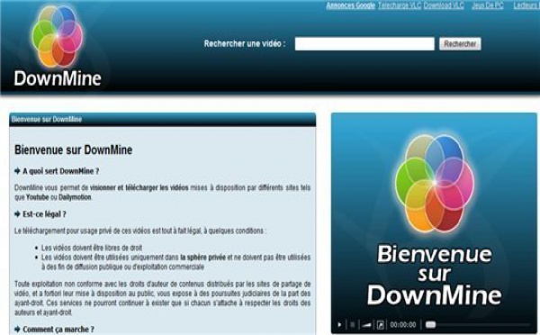 Petit coup de pouce à un site français et à son concepteur Titou, qui s'appelle DownMine. DownMine permet de télécharger des vidéos de type Youtube ou Dailymotion pour ne citer qu'eux. Le principe est simple, soit vous mettez l'URL de la vidéo choisie dans la case " rechercher une vidéo " soit vous tapez le type de vidéo...