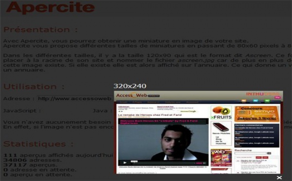 Apercite - Générateur de screenshot en ligne - 05/02/2009