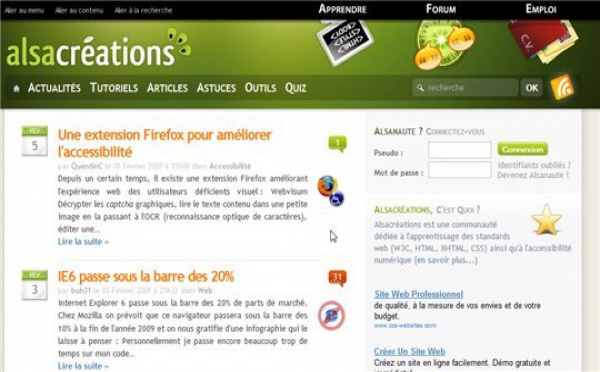 [coup de projo] Alsacréations - nouveau design et nouvelle organisation - 05/02/2009