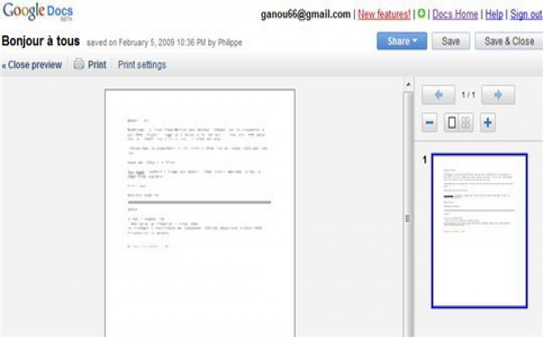 Google Documents intègre l'aperçu avant impression ... - 05/02/2009