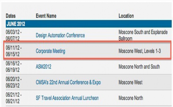 Voilà la grande rumeur du jour, elle concerne Apple, et plus exactement la keynote de présentation de l'iPhone 5 qui pourrait se dérouler au démarrage de la WWDC 2012 au mois de juin 2012. Le planning de réservation du Moscone Center de San Francisco, en image ci-dessus, atteste d'un meeting d'une entreprise entre les 11 et...