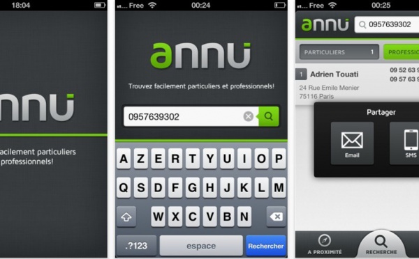 Annu pour iPhone - L'annuaire inversé, pro et particulier par Free - 08/02/2012