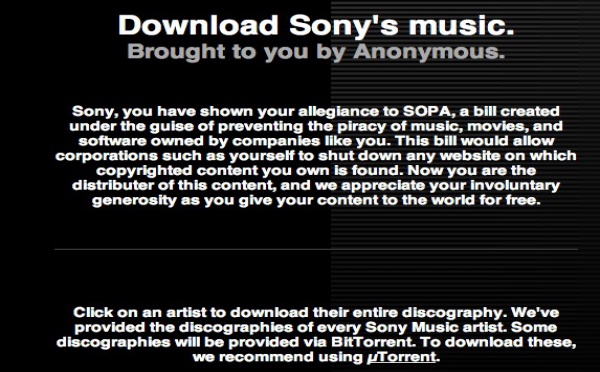 World War Web - Les Anonymous mettent en ligne le catalogue musical de Sony - 22/01/2012