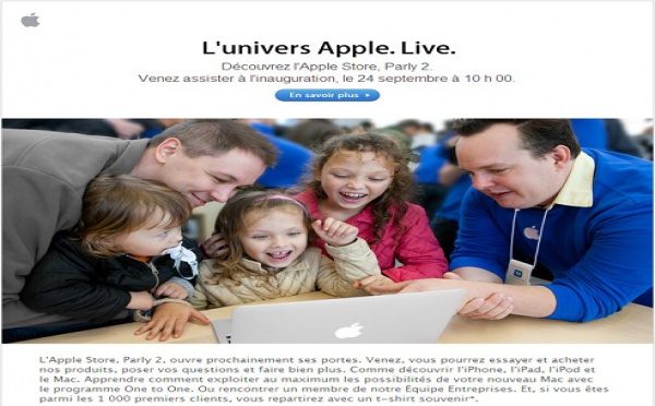 Ouverture Apple Store Parly 2, le 24 septembre à 10h - 20/09/2011