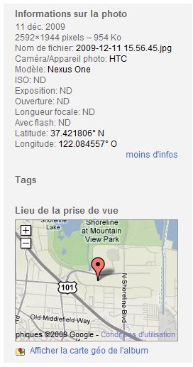Des photos ont été trouvées sur Picassa, comme étant prise avec le Nexus One, en tout cas identifiées comme telles.