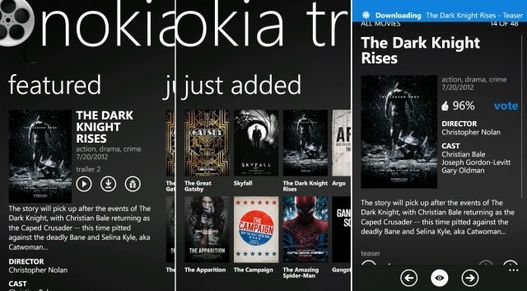 Nokia n'en finit pas d'ajouter des applications au marketplace de sa série Lumia. Après Nokia reader (un amazon kindle like), voici Nokia Trailers, une appli pour trouver les bandes annonces de tous les films à l'affiche et des films à venir... Pour l'instant, uniquement disponible en anglais, Nokia Trailers permet également d'obtenir un rappel de la sortie des films mis en favori, de voir une fois le film sorti dans quels cinémas près de chez vous il est à l'affiche et enfin de partager vos bandes annonces par email ou sur les réseaux sociaux. L'appli permet de télécharger les bandes annonces sur la mémoire du téléphone, pour une consultation hors ligne. Reste à savoir si une version française est à l'étude... On l'espère!