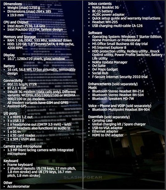On avait déjà parlé du Nokia Booklet 3G et de ses caractéristiques principales.