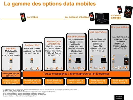 Au total, pas moins de 6 offres sont proposées allant de la formule "Mail Basique" à l'offre "Duo pour tablettes" proposant deux cartes SIM avec une pour le smartphone et l'internet (Tethering) avec sa tablette ou son ordinateur portable.