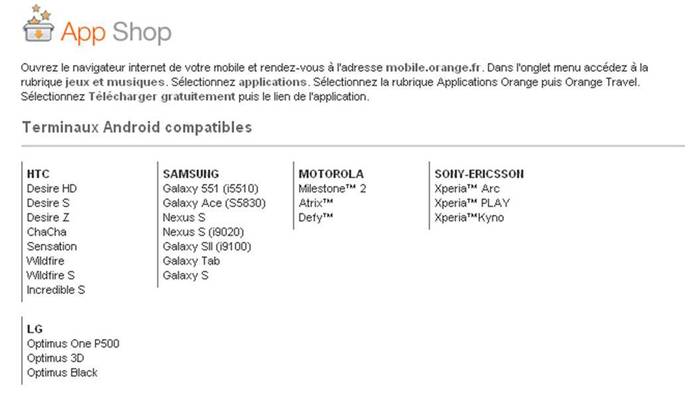 L'application Orange Travel est pour le moment réservée aux détenteurs d'un terminal Android 2.2 minimum et sera prochainement disponible sur iPhone et Blackberry.