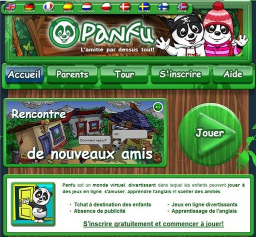 Panfu est donc un monde virtuel ou les personnages sont des pandas et votre enfant pourra se créer son personnage, aménager sa cabane, jouer à des jeux, rencontrer d'autres personnages, discuter avec eux et même commencer à apprendre l'anglais ... et tout ça gratuitement et en ligne.