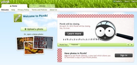 Picnik, un site d'édition de photos en ligne, racheté par Google en Mars 2010, a officiellement annoncé sa fermeture pour le 19 avril 2012.