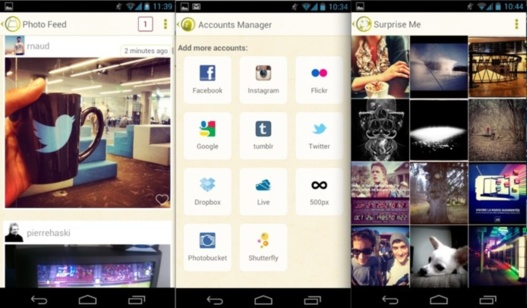 En effet, Pictarine nous propose de réunir en 1 seule application toutes les photos d'applications comme Flickr, Instagram, Twitter, Facebook, Google+, Dropbox, 500px, etc...