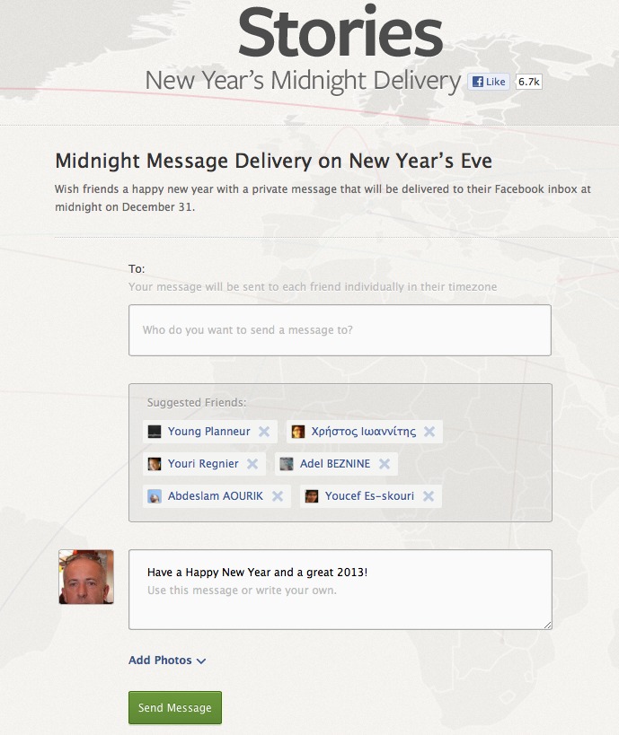 C'est ce que nous propose Facebook via Midnight Delevery. Vous allez pouvoir préparer par avance les cartes de voeux pour vos amis Facebook et ces derniers recevront leur carte individuellement le 31 décembre à minuit.