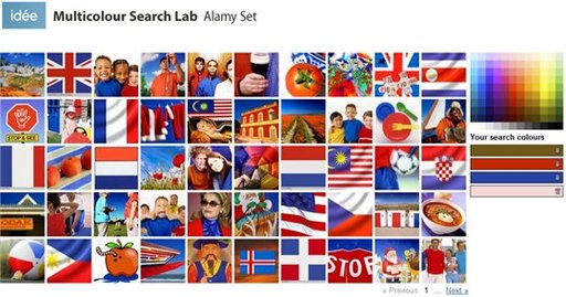 Vous choisissez une couleur dans la palette et le moteur vous affiche des photos provenant de Flickr selon la couleur choisie. Si vous cliquez sur une autre couleur, elle s'ajoute à la première et ainsi de suite.