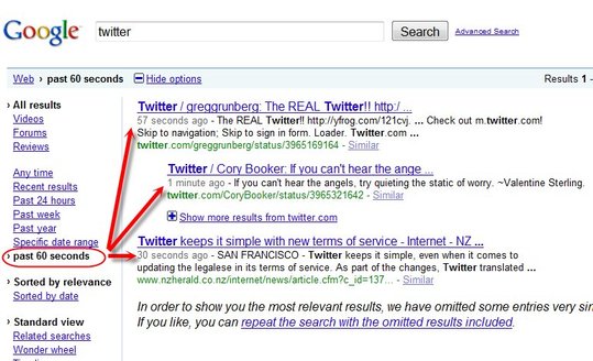 Et bien, on peut maintenant faire de la recherche en temps réel sur Google, ou presque, il suffit pour cela de connaître une petit astuce qui vous permettra de voir des billets indexés depuis moins de 15 secondes parfois.
