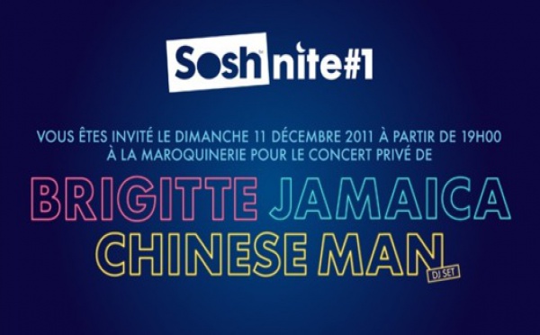 Sosh propose une Sosh Nite demain soir, dimanche 11 décembre à partir de 19h, à La Maroquinerie, à Paris, avec, comme vous le voyez sur l'image ci-dessus, Brigitte, Jamaica et Chinese Man (DJ) Pour rappel Sosh va mettre en ligne un nouveau forfait le 15 décembre répondant aux attentes de consommateurs qui devrait être proposé...