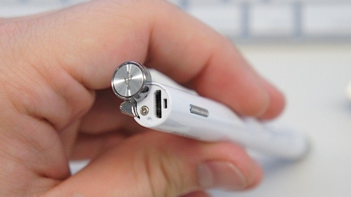 Le stylet BT S Pen, qui ressemble fortement à celui que j'ai utilisé lors de la conférence du Galaxy Note à Londres, cache en fait plusieurs particularité qui en font un genre d'oreillette Bluetooth. En effet, le BT S Pen cache un haut parleur, un micro et une prise de chargement en plus du Stylet lui même qui sert à écrire ou dessiner sur la tablette ou tout autre appareil.