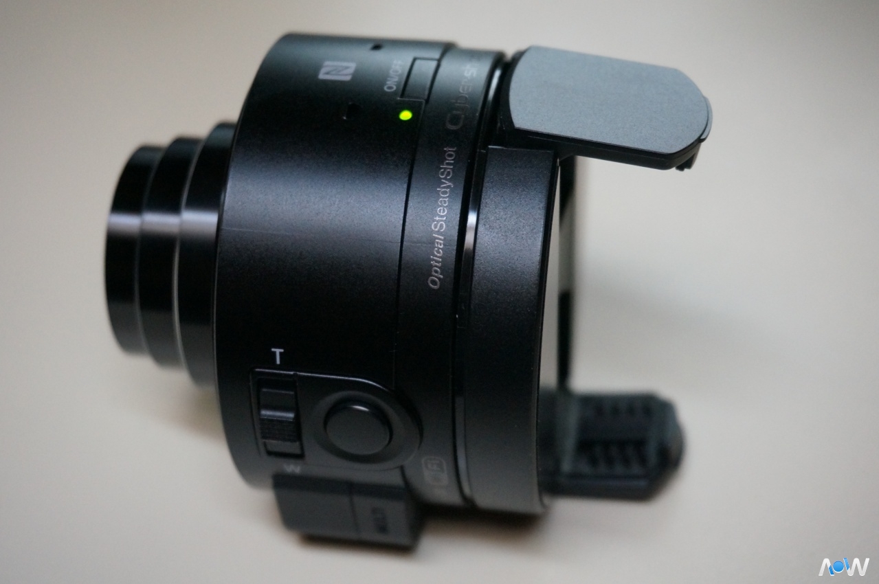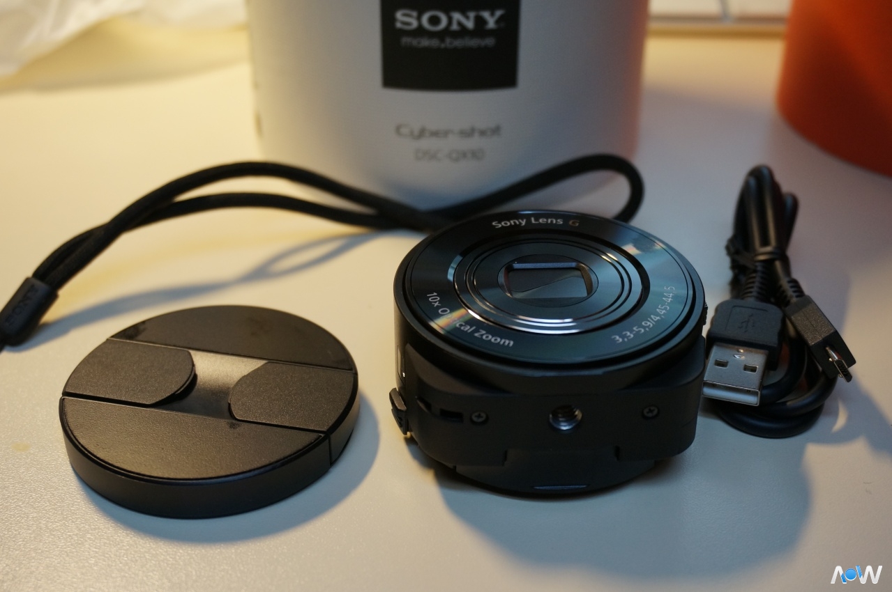 Voici donc cet étanche appareil, qui ressemble tout bonnement à un objectif de Reflex, mais qui concentre une bonne dose de technologie dans ses entrailles. Sans reprendre toutes les caractéristiques précises du QX10, il faut quand même noter qu'on va retrouver du WIFI, de la NFC, un emplacement de carte microSD, un zoom 10x, un objectif Grand Angle et un capteur de 18 Mpx. Mais ce n'est pas tout puisque le QX10 peut également filmer donc on y retrouve un micro stéréo.