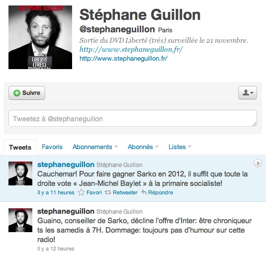 Guillon, on aime ou on aime pas, mais pour ceux qui aiment, direction son compte Twitter.