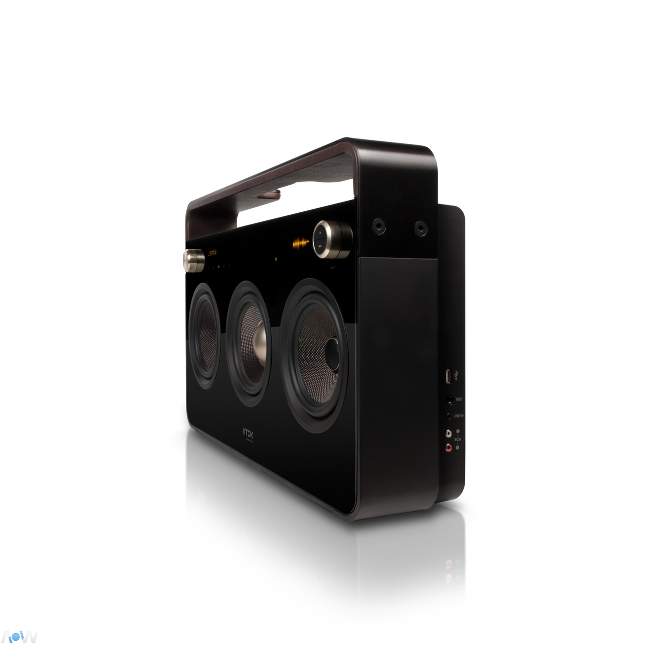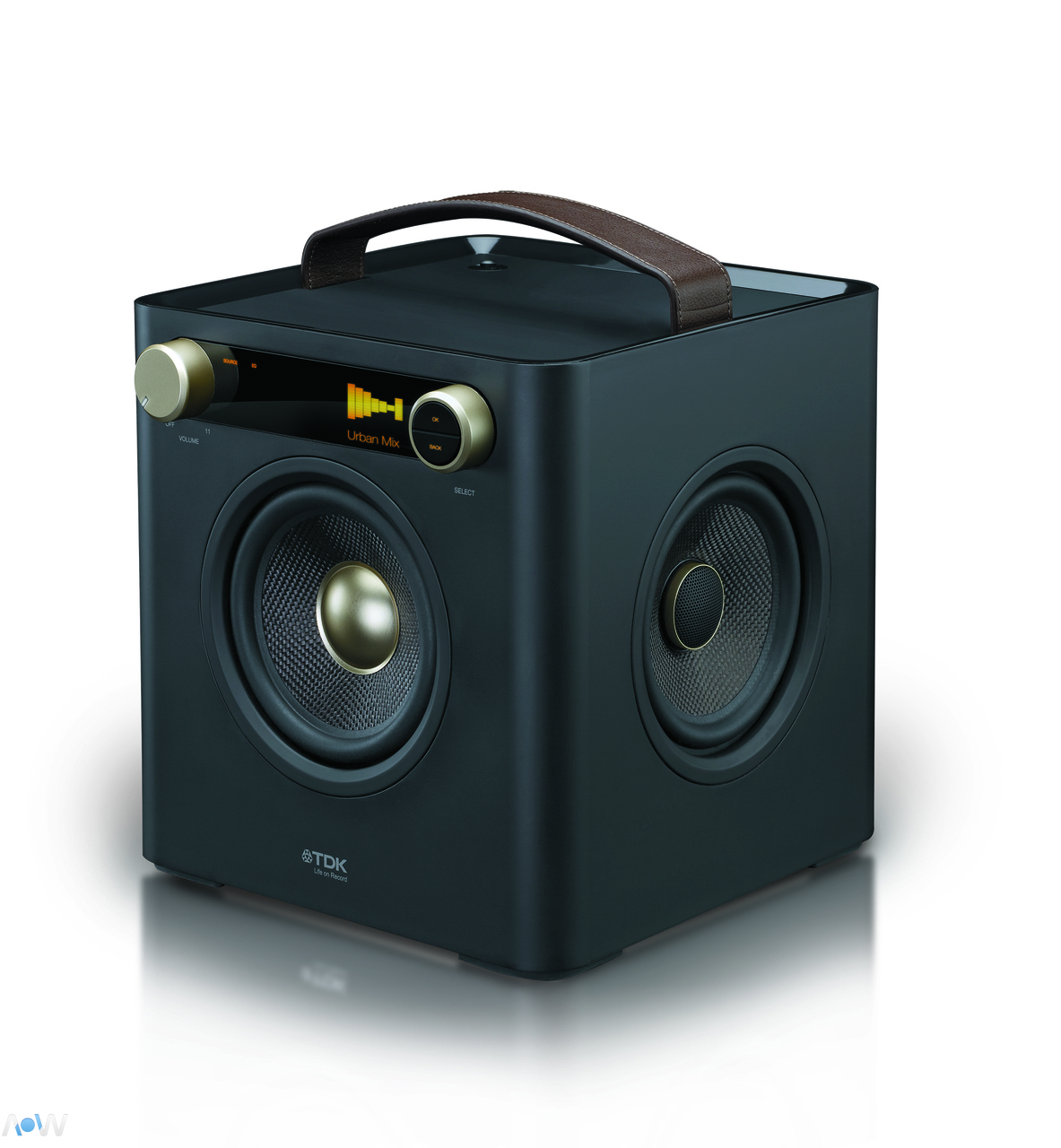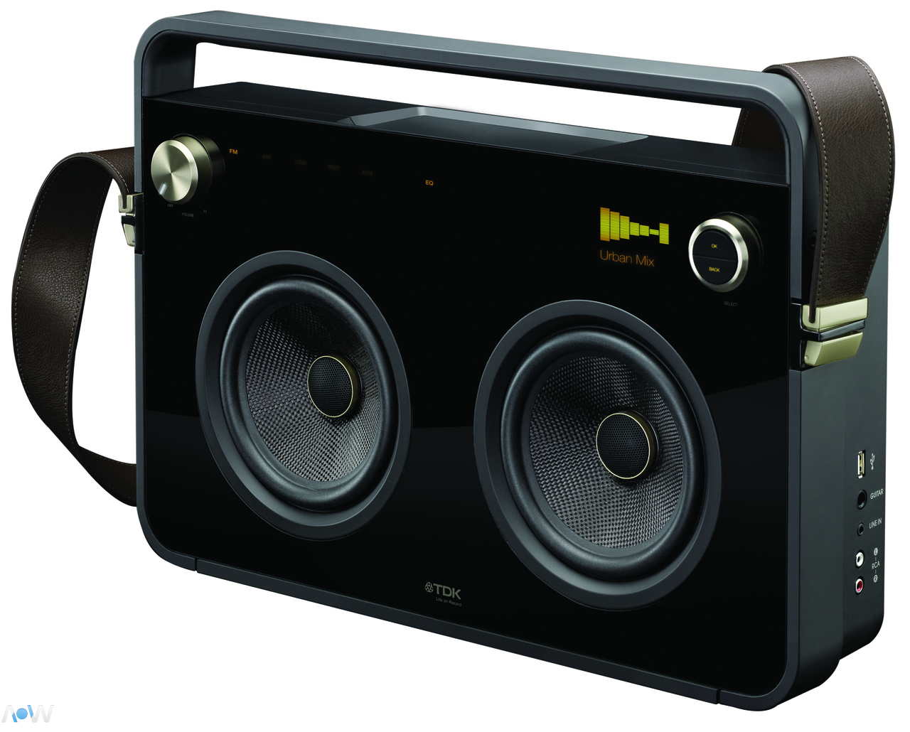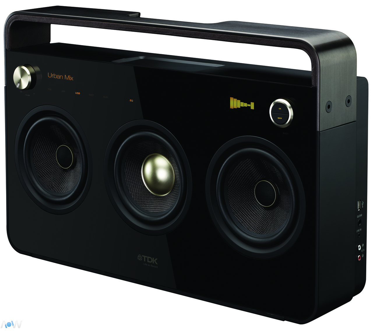 Les entrées incluent des ports USB, de 3,5 mm et auxiliaires pour des connexions à un iPod ou iPhone, un smartphone ou une clé USB. Les utilisateurs peuvent également brancher une guitare ou un microphone et mixer avec d’autres sources musicales.