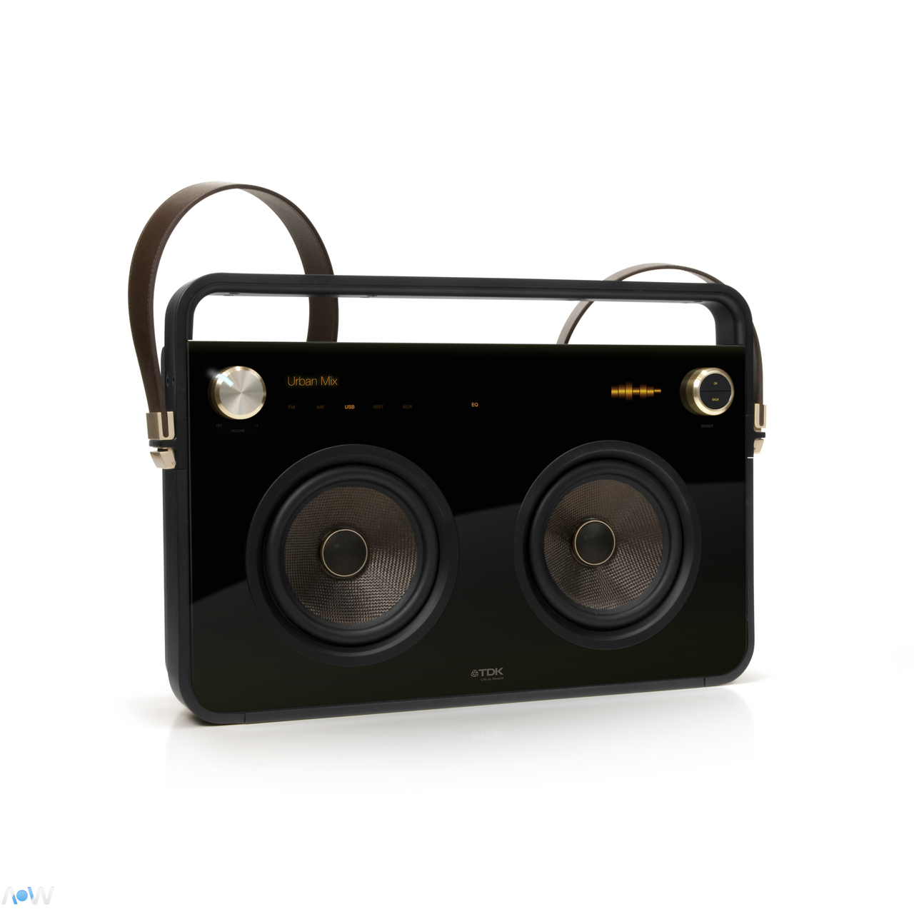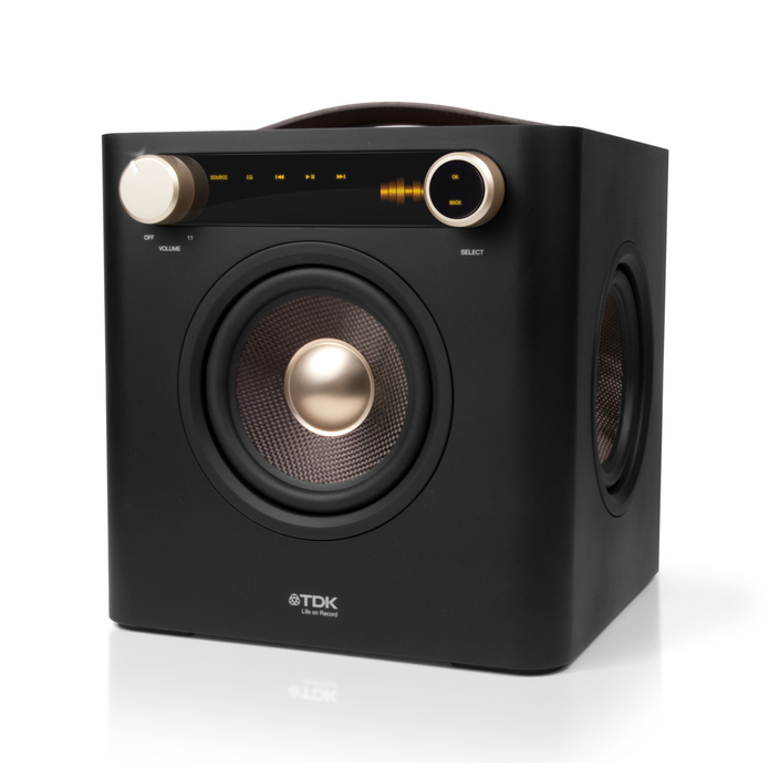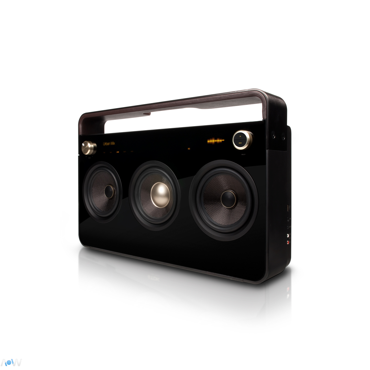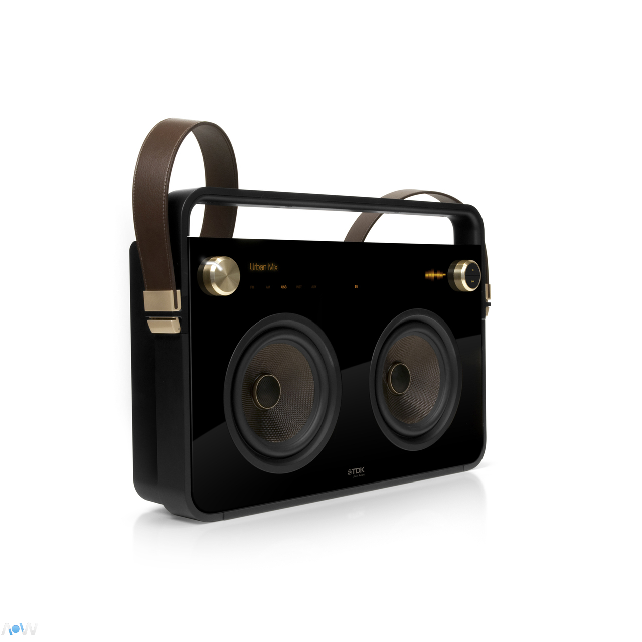 Les entrées incluent des ports USB, de 3,5 mm et auxiliaires pour des connexions à un iPod ou iPhone, un smartphone ou une clé USB. Les utilisateurs peuvent également brancher une guitare ou un microphone et mixer avec d’autres sources musicales.