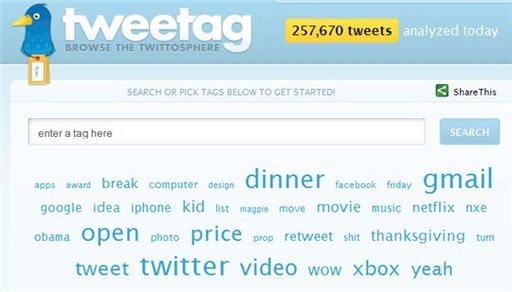 Pour ceux qui font de la veille sur Twitter, voilà un service qui pourrait bien vous servir. Tweetag permet de rechercher des discussions par associations de mots clés, donc d'affiner la recherche en ajoutant des mots.