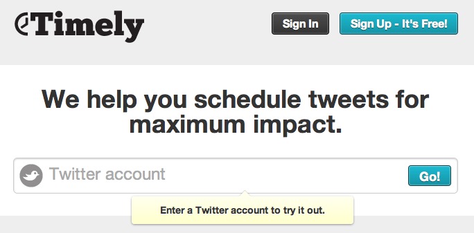 Timely est le genre d'outil que j'affectionne particulièrement, car il permet de nous faire gagner du temps. Le constat est plutôt simple : en se basant sur l'heure d'envoi de nos 200 derniers tweets, le service va automatiquement en déduire l'heure la plus propice à l'envoi de votre prochain tweet.