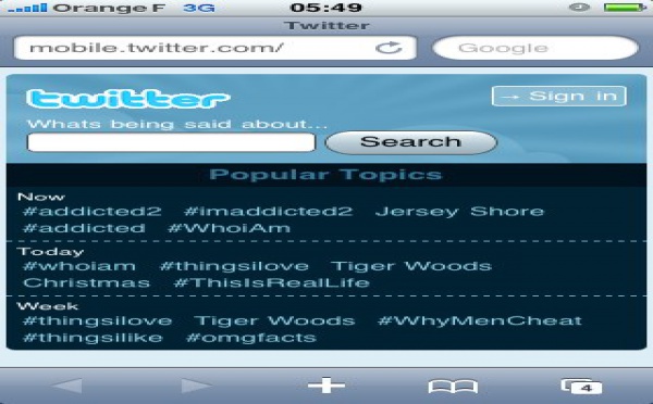 Twitter - Nouvelle version mobile du site - 04/12/2009