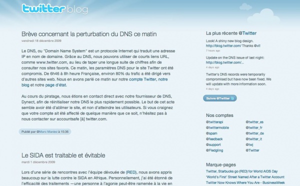 Twitter - Son blog en français, son design, et ... - 23/12/2009