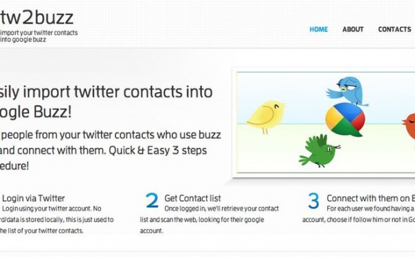 Tw2buzz - Importer ses contacts Twitter sur Google Buzz - 14/02/2010