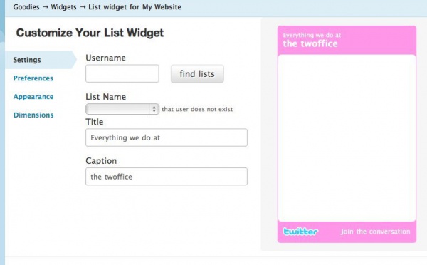 Twitter propose un Widget pour les Listes - 03/11/2009