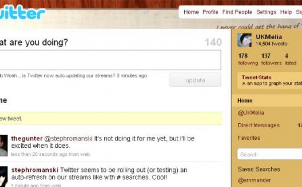 Twitter teste les notifications en Home Page - 05/11/2009