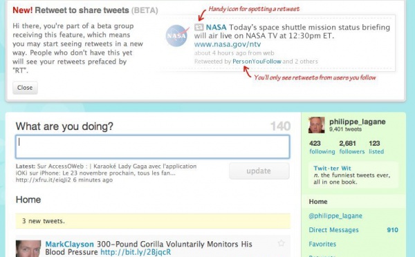 Les ReTweet arrivent sur Twitter - 11/11/2009