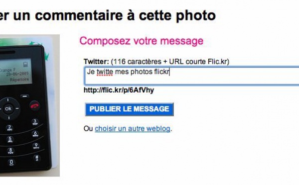 Même si l'on en parle depuis un petit moment, la fonctionnalité permettant de Twitter les photos importées sur Flickr vient d'être officialiasée.
