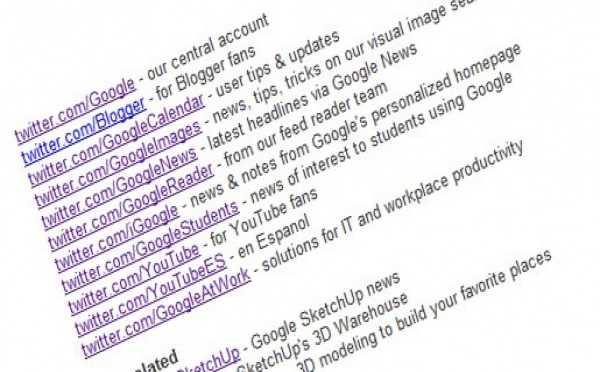 Si vous êtes un accroc de Google et que vous suivez l'actualité du Web sur Twitter, alors vous trouverez certainement intéressant de connaître les différents comptes Twitter appartenant à Google en fonction du service. Ils sont tous affichés sur le blog officiel de Google, je vous laisse regarder, et ... il y en a quand même...