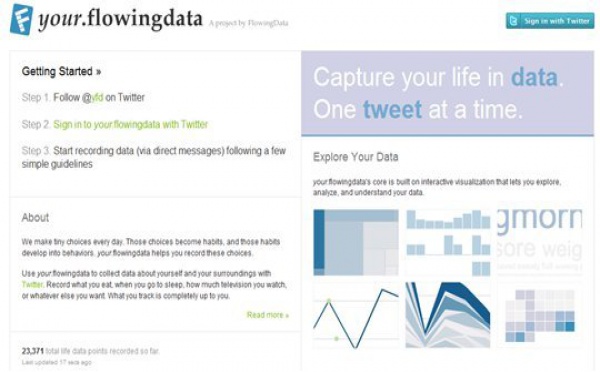 Le site Your.Flowingdata nous propose de garder une trace de tout ce que l'on fait à longueur de journée, ou de suivre son poids à heure régulière, ou ... enfin vous voyez, on peut tout imaginer. Le principe de Your.Flowingdata est simple : vous followez @yfd sur Twitter vous vous inscrivez sur...