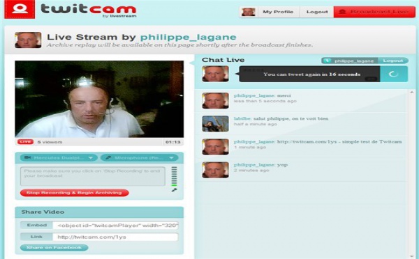 Twitcam; est une nouvelle application Twitter mise en ligne par Livestream et permettant de discuter en live via une Webcam et de faire participer vos amis à une discussion via Twitter. En clair, on vous voir, on vous entend, et vos amis vous envoient des messages via Twitter sur un Tchat room qui n'est pas privé puisque les...