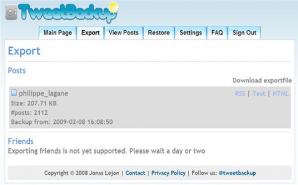 TweetBackup - Backup de vos Twits sur Twitter - 08/02/2009