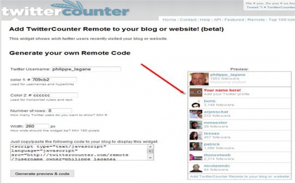 Twitter Remote, une création de l'équipe de Twitter Counter, vous permet de créer un widget pour votre blog qui affichera les comptes twitter de vos derniers visiteurs. Ainsi chacun pourra connaître les comptes Twitter des visiteurs. J'ai testé rapidement sur des blogs l'ayant installé, et je pense qu'il faut que les gens...