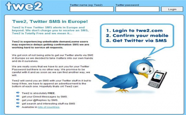 Twe2 - SMS gratuits pour Twitter - 16/02/2009