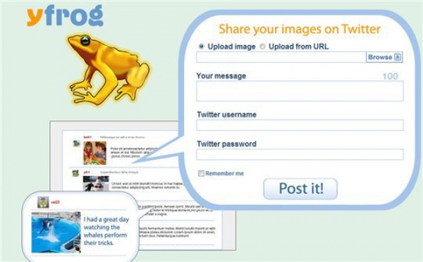yFrog, un service développé par ImageShack, permet de partager des images, photos sur Twitter. Le principe est le même que sur TwitPic, déjà bien connu. Vous uploadez une image, vous mettez un commentaire, vos identifiants Twitter et vous envoyez le tout. yFrog met également son API à disposition des développeurs. A vous...